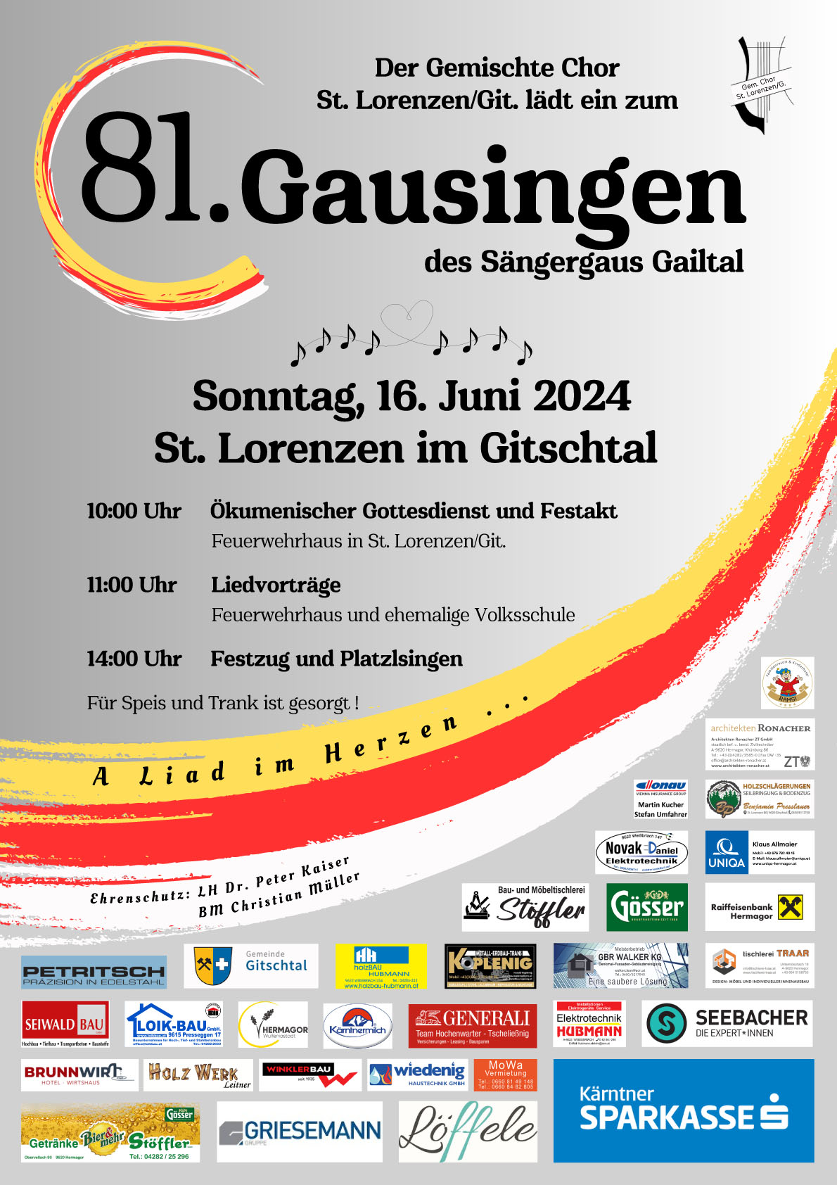 Sonntag, 16. Juni 2024Ab 10:00 UhrSt. Lorenzen im Gitschtal Gausingen Programm © Gemischte Chor St. Lorenzen im Gitschtal