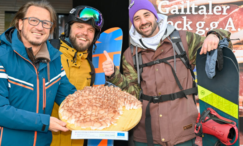 Das Veredelungsprodukt mit dem EU-Gütesiegel „g.g.A.“ mit seiner goldgelben Außenfarbe, dem schneeweißen Fett und dem intensiv roten Muskelfleisch zog nicht nur viele Blicke auf sich sondern auch viele Ski- und Snowboardfahrer:innen aus mehreren Nationen magisch an.