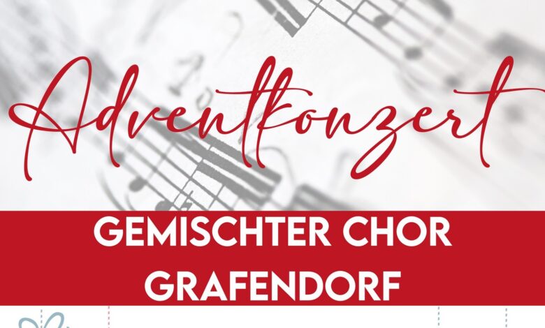 Der Gemischte Chor Grafendorf lädt euch, einen Tag vorm Heiligen Abend (23.12.2023), zu einem Adventkonzert ein. Gemeinsam mit dem MGV Gundersheim-Griminitzen und instrumentalen Gastgruppen stimmen wir uns um 17:00 Uhr in der Pfarrkirche Grafendorf auf das Weihnachtsfest ein. Danach gibt es noch eine kleine Agape.