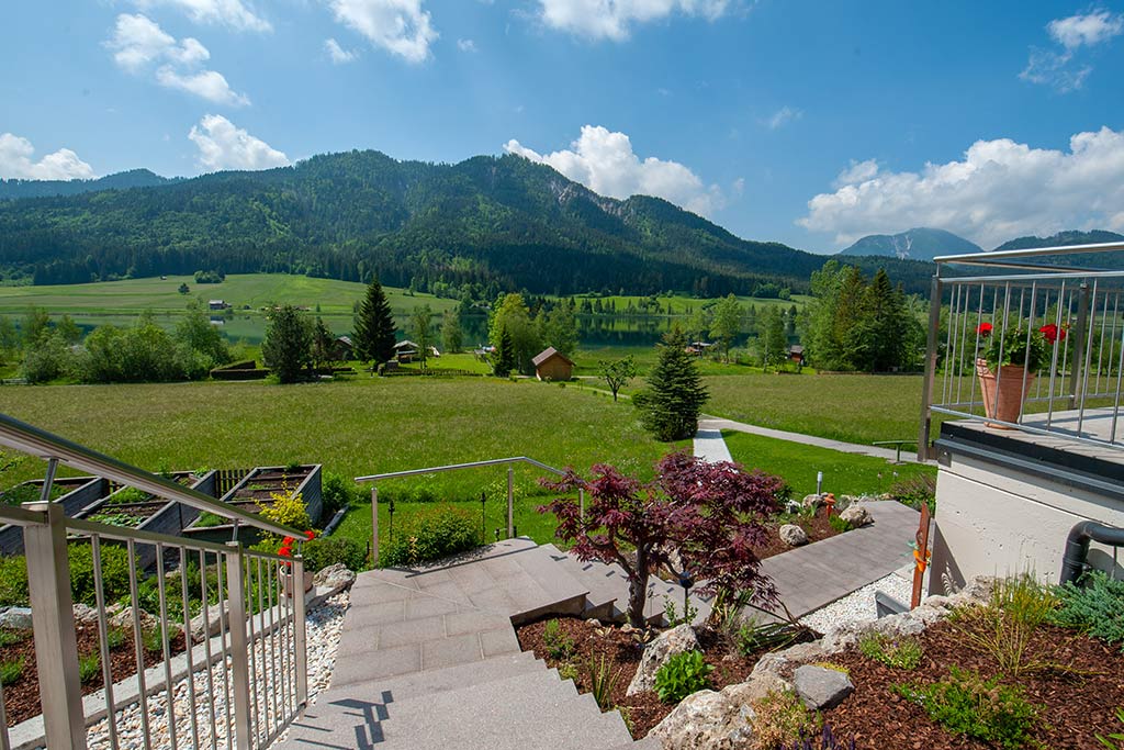 Während Sie nachts in den liebevoll eingerichteten Zimmern, Appartements oder Ferienwohnungen hoffentlich nur Schönes träumen, können Sie tagsüber am hauseigenen Badestrand und auf der Sonnenterrasse die Sonne genießen und auch den Bereich „Sauna&Entspannen“ in Anspruch nehmen! Herrlicher Rundumblick auf See und Berge.