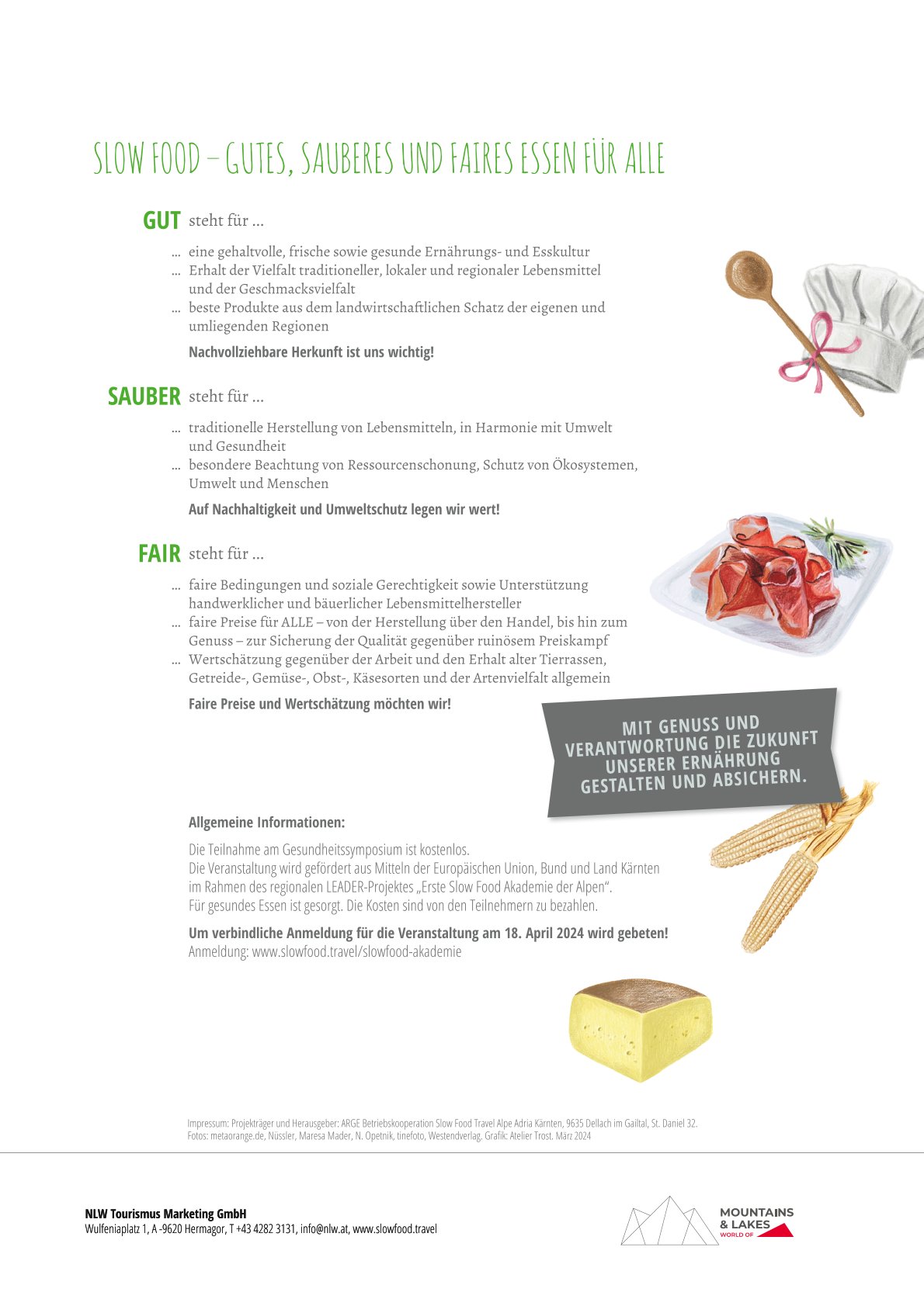 Essen und Gesundheit – zwei Themen, die untrennbar miteinander verbunden sind. Wie die richtige Ernährung unser Wohlbefinden und unsere Heilungschancen positiv beeinflussen kann, beleuchtet ein hochkarätig besetztes Symposium im Rahmen der „1. Slow Food Akademie der Alpen“ am 17. und 18. April in Hermagor.