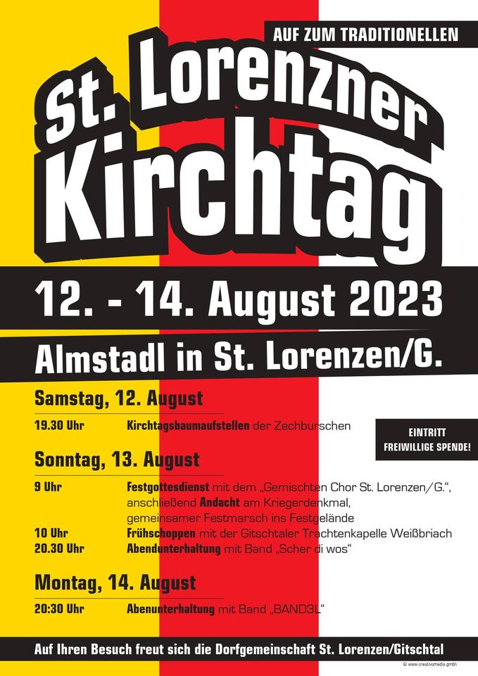 St. Lorenzner Kirchtag findet von 12.-14. August am Festgelände im Gitschtal St. lorenzen statt.