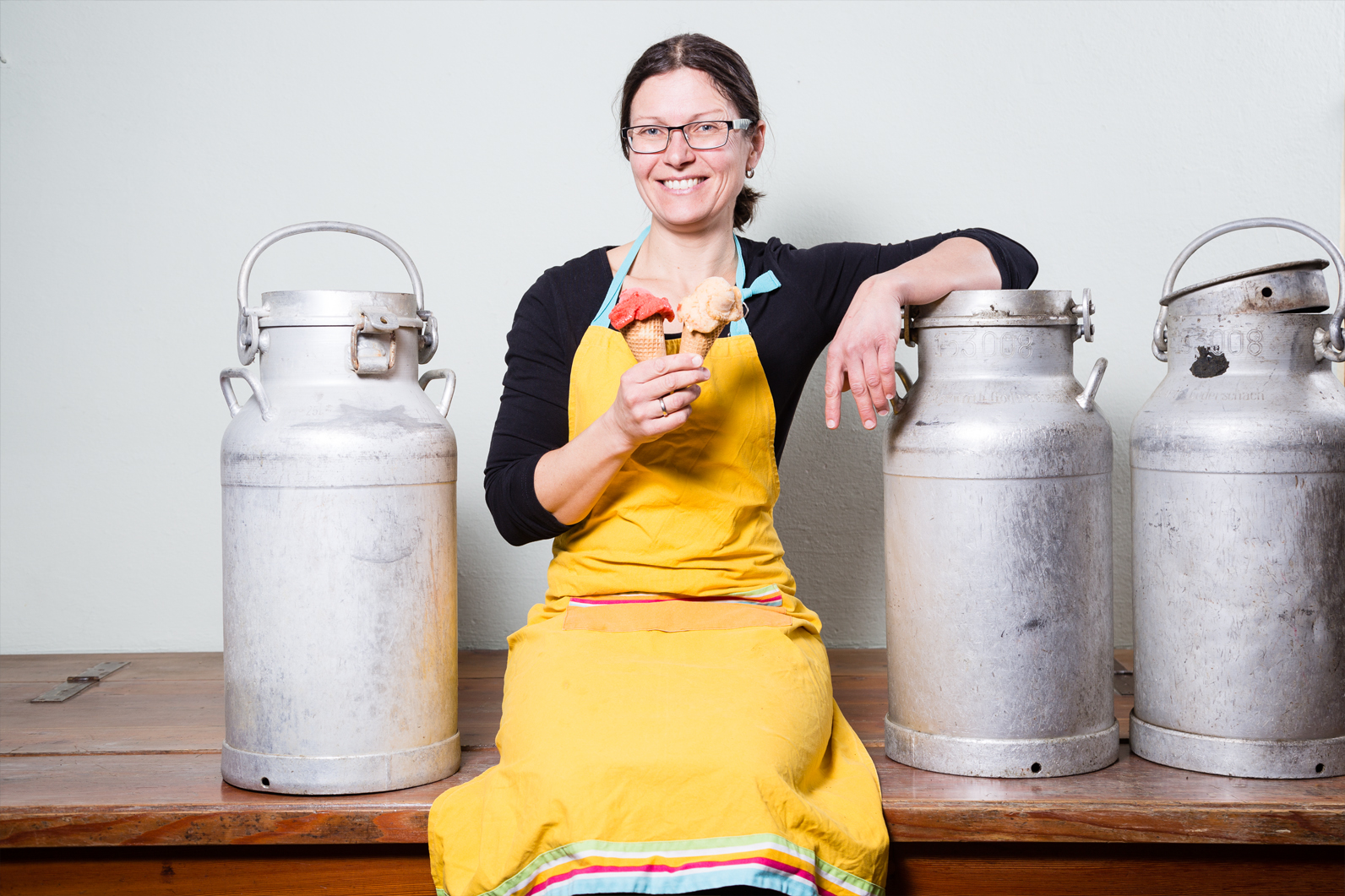 Elisabeth „Lissi“ Neuwirth lebt zusammen mit ihrem Mann Günter, ihren drei Töchtern Julia, Sonja und Elisabeth sowie deren Großeltern auf dem Bauernhof Maar in Goderschach im Gailtal. Die Idee, eigenes Eis zuzubereiten, lag irgendwann auf der Hand: Die 20 Kühe vom Maar-Hof geben beste frische Milch, im Garten wachsen jede Menge duftende Kräuter und Blumen. Lissi und ihr Mann lernten also alles über die Zubereitung von Speiseeis, tüftelten an Rezepten und präsentierten schließlich 2016 das Ergebnis: „Lissis kuhles Bauerneis“. Es heißt so, weil die Kühe dort ein „echt kuhles“ Leben führen dürfen, im Sommer auf saftigen Wiesen, im Winter im Laufstall mit Aussicht.