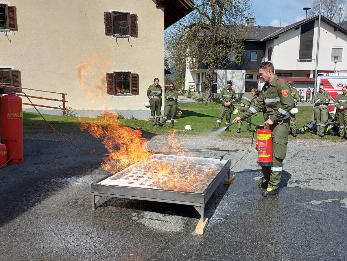 Bei der praktischen Übung mit Handfeuerlöschern konnten die jungen Feuerwehrleute echte Flammen löschen und die erlernte Theorie in die Praxis umsetzen. Ein herzlicher Dank gebührt an dieser Stelle der Firma Zerza Flüssig Gas GmbH, welche die gasbefeuerte Handfeuerlöscher-Übungsanlage kostenlos zur Verfügung stellte.