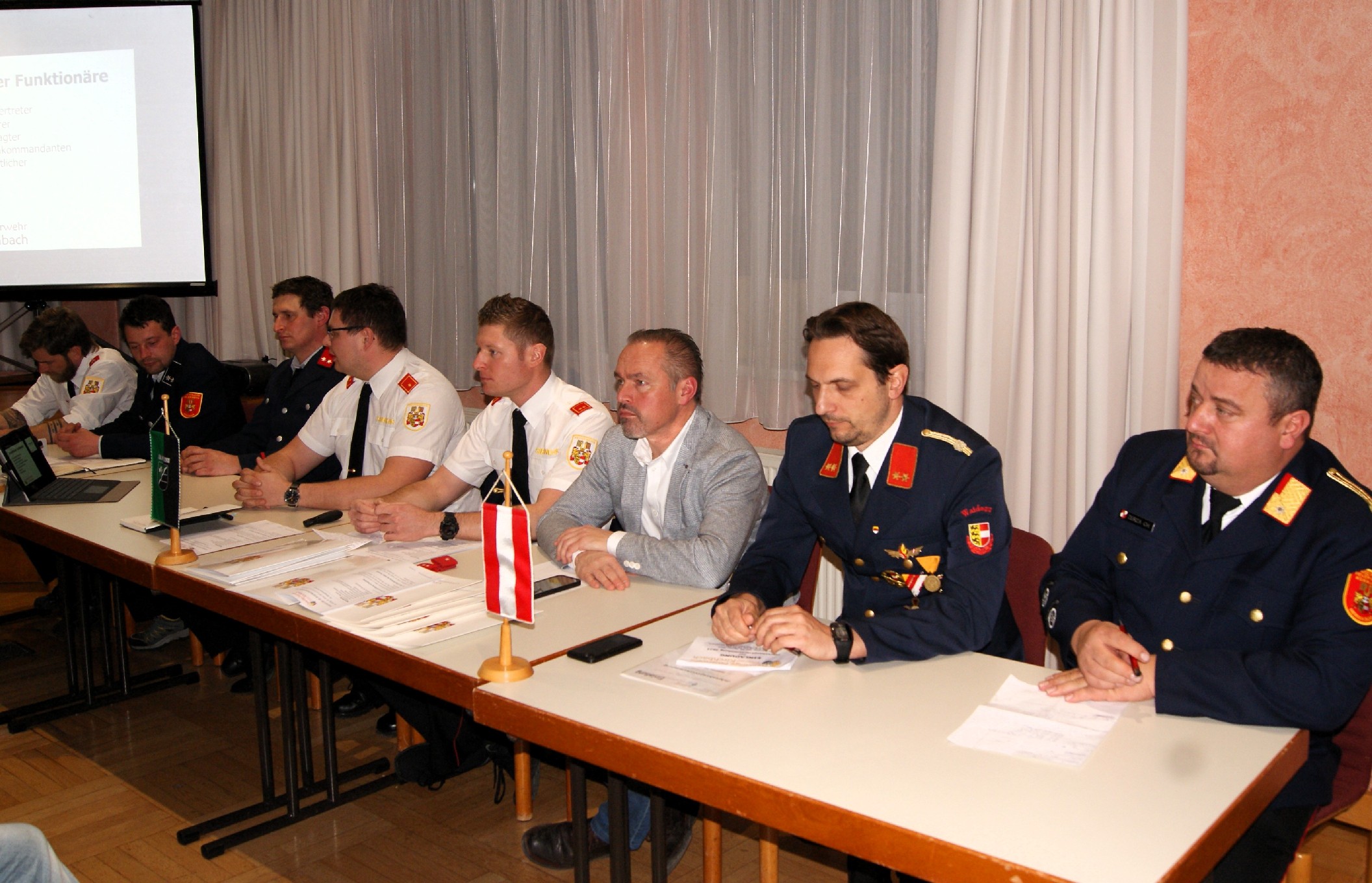 Kommandant Fabian Buchacher konnte Bürgermeister Markus Salcher, Abschnittsfeuerwehrkommandant Christian Zerza und Gemeindefeuerwehrkommandant Heimo Ramsbacher-Ranner begrüßen. Als Ehrengäste waren auch die Kameraden Ernst Tapeiner und Peter Plunger anwesend. Die Gastredner betonten in ihren Grußworten die Wichtigkeit der Feuerwehr und den Zusammenhalt innerhalb der Gemeinschaft. Besonders prägte der Hochwassereinsatz in Niederösterreich die Kärntner Einsatzkräfte. Trotz begrenzter finanzieller Mittel seitens der Kommune soll das Feuerwehrwesen weiterhin einen hohen Stellenwert einnehmen.
