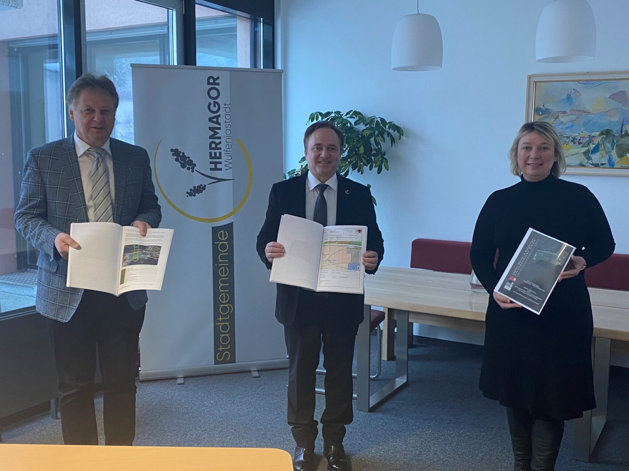 Mit dem Bau des Werkes soll schon bald begonnen werden: Die Holzwerke Gebrüder Schneider GmbH hat eine Absichtserklärung unterfertigt. „Hermagor hat sich gegen mehrere andere Standort-Konkurrenten durchgesetzt“, zeigt sich Wirtschafsreferentin und Stadträtin Christina Ball erfreut. „Das Gailtal bietet dem Unternehmen optimale Voraussetzungen: Die Versorgung mit Rohstoffen für die Produktion ist durch die ansässige Wald-, Forst- und Holzwirtschaft in Hermagor sichergestellt“. Ausschlaggebend war auch die Nähe zu südlichen und östlichen Staaten Europas sowie die Bahn-Anbindung. Das deutsche Unternehmen Holzwerke Gebrüder Schneider GmbH mit Stammsitz in Eberhardzell (Baden-Württemberg) will rund 45 Mio. Euro in den Standort Hermagor investieren. „Wir planen den Betrieb in der Startphase mit 40 Mitarbeitern zu führen, später soll auf 60 Leute aufgestockt werden“, berichtet Geschäftsführerin Carmen Schneider. „Mit Hermagor haben wir den optimalen Standort gefunden. Die Zusammenarbeit mit bereits ansässigen Unternehmen der Branche war für uns eines der entscheidenden Kriterien.“