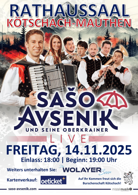 Live am Freitag, 14.11.2025 im Rathaussaal in Kötschach-Mauthen.