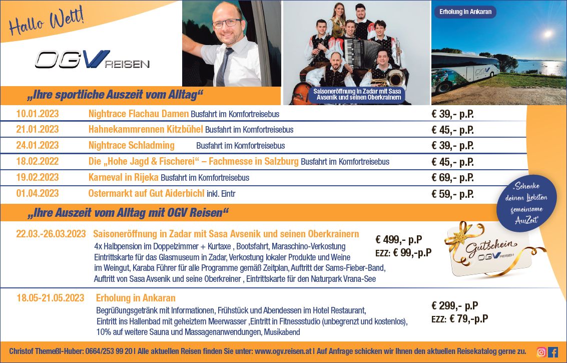 Ihre Auszeit vom Alltag mit OGV Reisen! Buchungen unter: 06642539920 oder www.ogv.reisen.at