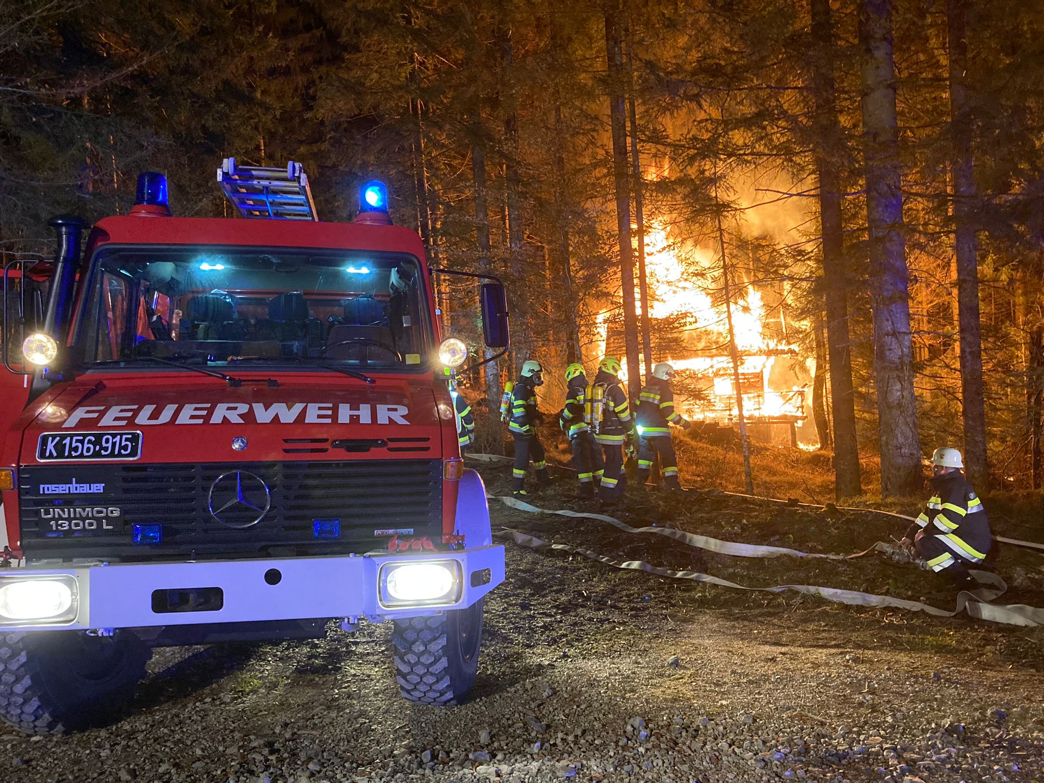 Am 28.11.2023 gegen 19:40 Uhr kam es bei einer Jagdhütte nordöstlich des Reißkofelbades in der Marktgemeinde Kirchbach, Bezirk Hermagor, zu einem Brand.