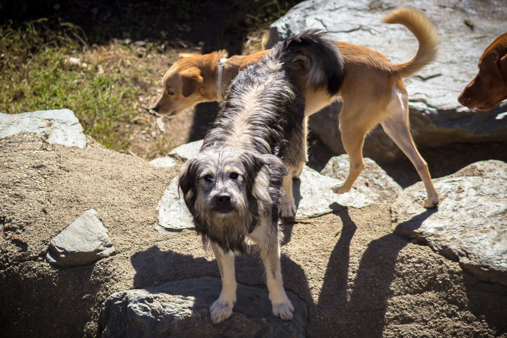 Mein Verhalten, als ich hier als Fundhund ins TiKo kam, war auch ganz typisch. Mit Hunden kam ich sofort super klar, die kann ich lesen wie ein offenes Buch und mich ihnen auch ganz schnell anpassen. Aber der Mensch, dessen Bewegungen und Berührungen sind mit echt unheimlich. Aber nachdem meine Bezugstierpflegerin sich echt viel Zeit genommen hat, habe ich mir meine eigenen Strategien angeeignet.